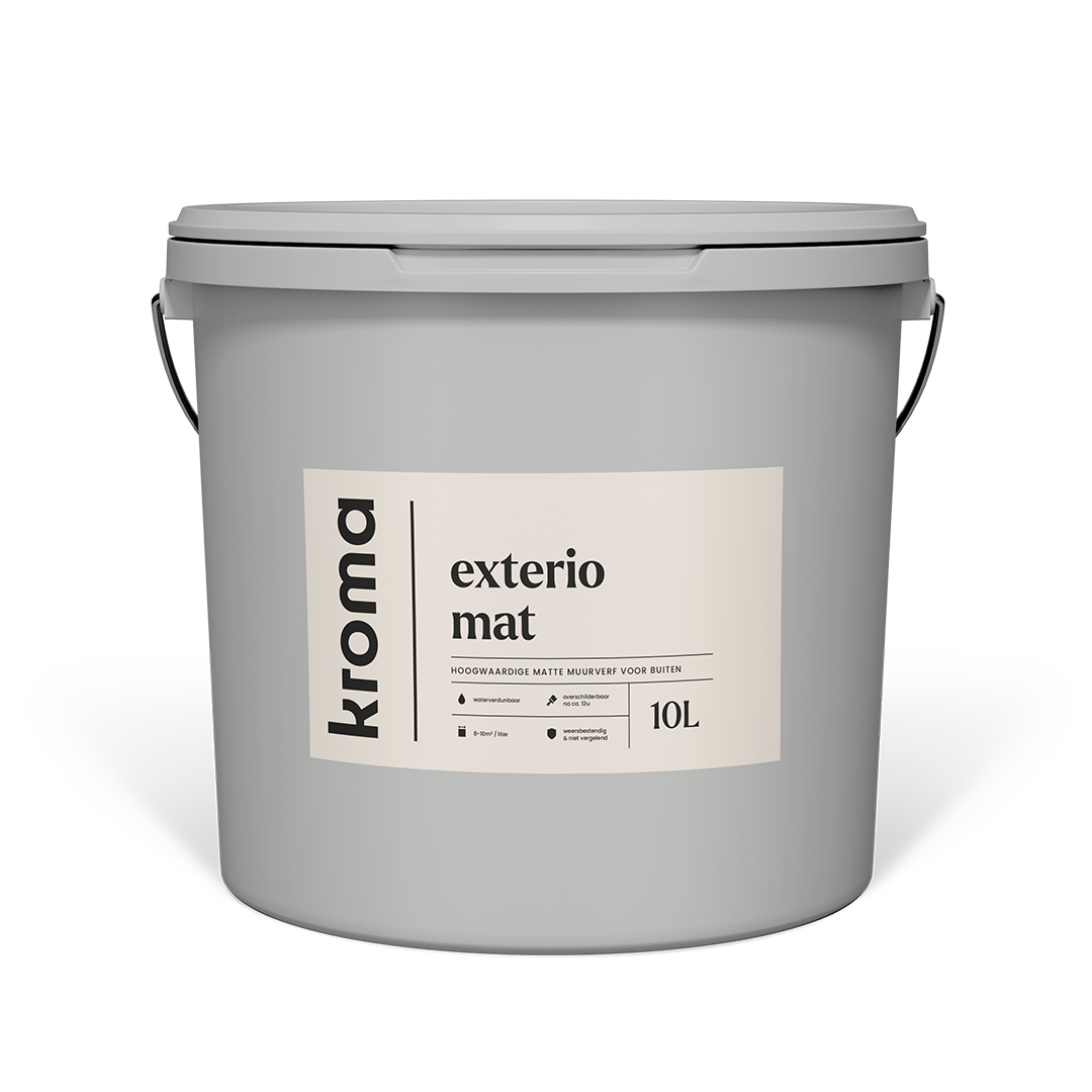 Hoogwaardige, matte, acrylaatgebonden muurverf oor buiten. Deze verf kan ook gebruikt worden in vochtige ruimtes binnen zoals badkamers of keuken.
